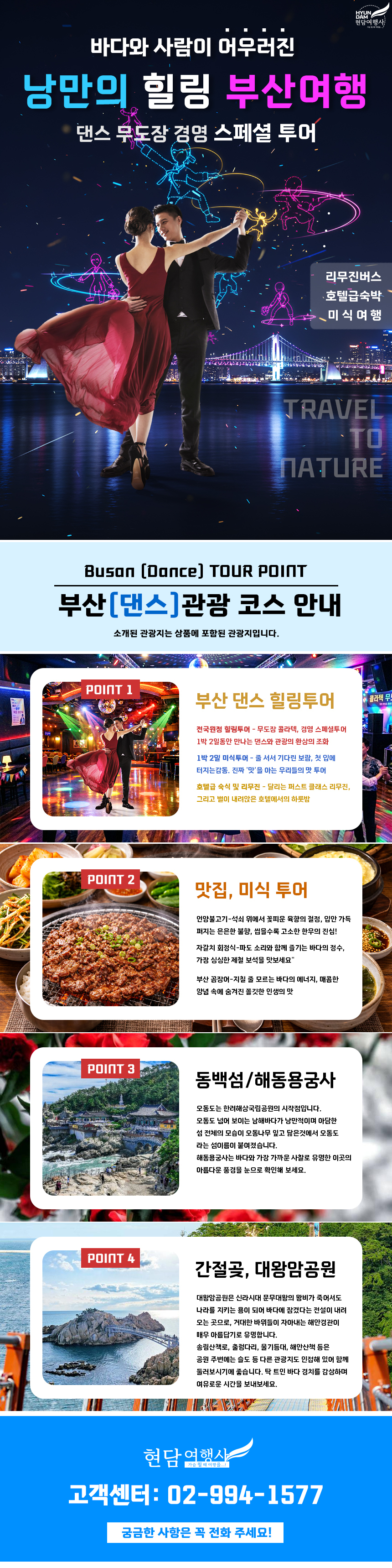 가슴 뛸 때 여행을…! 국내여행부터 해외여행까지 다년간의 노하우로 다양하고 알찬상품을 고객님께 제공하도록 노력하고있습니다.